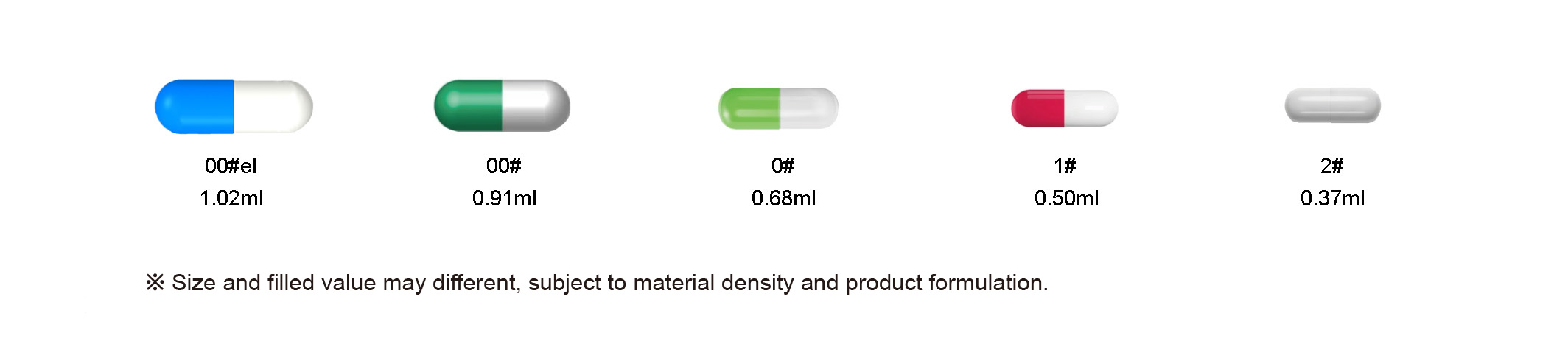 ※ Colourless and white are commonly used colour for hard shell capsules, or you can customise according to your needs.